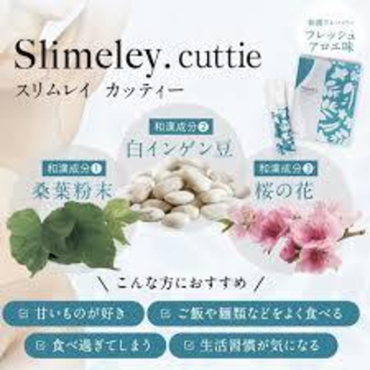 原材料名:難消化性デキストリン(アメリカ製造)、ガラクトオリゴ糖液糖、酵母由来食物繊維、寒天、桑葉粉末、白インゲン豆エキス末(白インゲン豆抽出物、マルトデキストリン)、グルコマンナン、ギムネマシルベスタ抽出物(ギムネマシルベスタエキス、デキストリン)、サラシアレティキュラータ抽出物、デキストリン、桜の花エキス加工粉末/クエン酸、香料、甘味料(ステビア、スクラロース)
